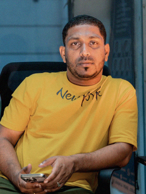 Arulraj’s practice is anchored in the histories, memories, and unspoken narratives of the Malaiyaga Tamil tea plantation community. Raised in the line-room settlements of Haputale—environments shaped by colonial architecture, economic precarity, and generational endurance—he transforms lived experience and inherited memory into a visual language of resistance and remembrance. His paintings and mixed-media works, layered with acrylic, ink, pencil, and tea stains, often embed plantation materials such as tea leaves, woven baskets, name tags, and labor tools, reclaiming them as potent metaphors for displacement, exploitation, survival, and identity.